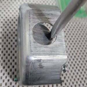 I prepared the extension box by removing the 1/2” knockout plugs (it also has 3/4 knock out plugs, don’t remove those), hitting a screwdriver with a hammer to start the plug loose and then bending the plug back and forth with pliers until it broke free.